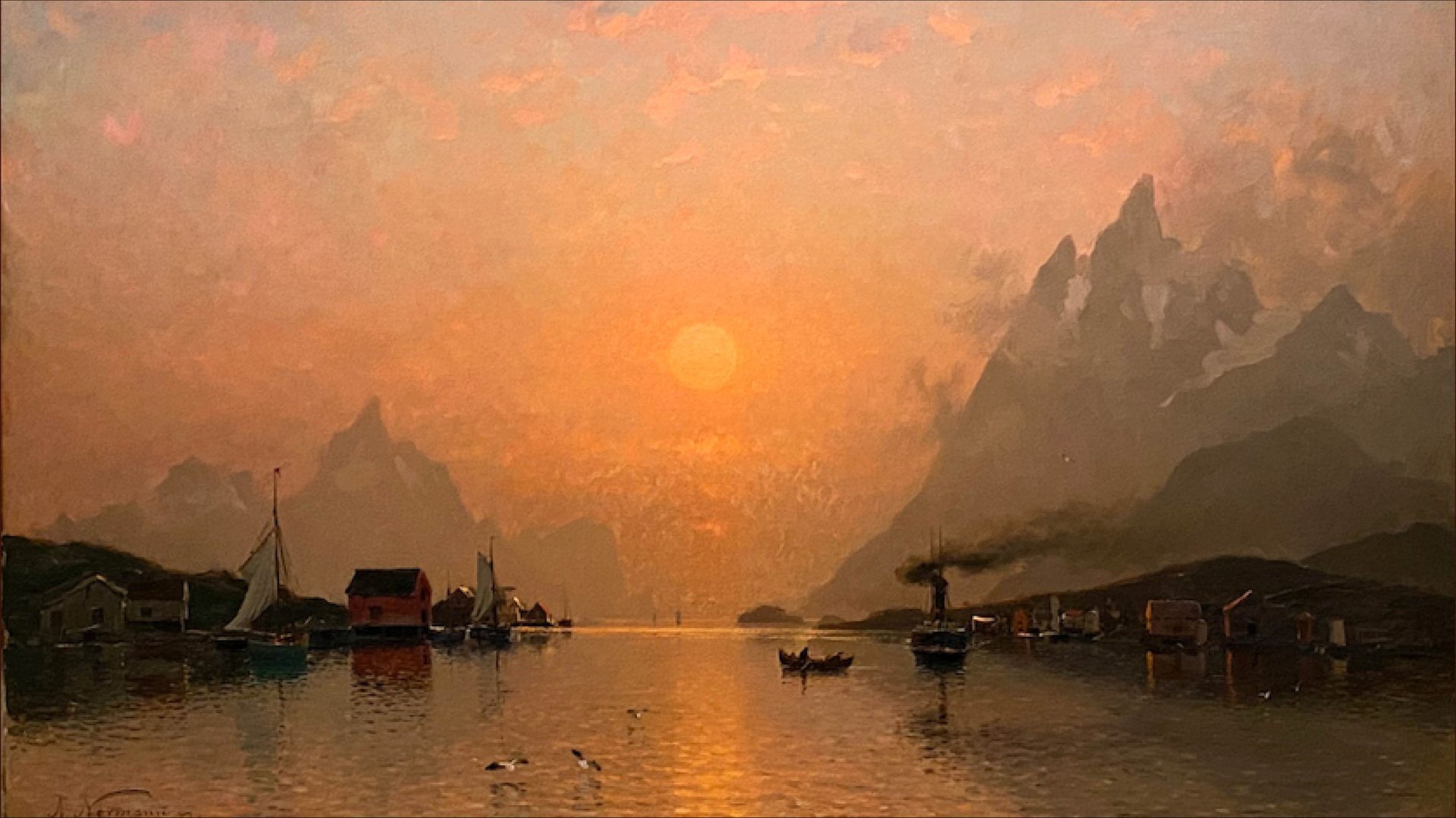 Velkommen til et kreativt og hyggelig søndagsverksted. Vi utforsker hvordan det er å tegne med oljepastell-kritt. Kanskje kan vi lære noe av kunstneren Adelsteen Normanns vakre og varme malerier av Midnattssola?