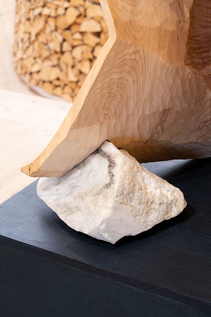 Et vepsebol med innskrevne regler for å ikke bli stukket av jordvepsa. Glass med mineraler på ei kjøkkenhylle, og ei kiste. Tjære som først har blitt brent under torven i tjæremila, for så å dryppe sakte og kontrollert i utstillingsrommet. Biter av historier satt sammen på nytt.
