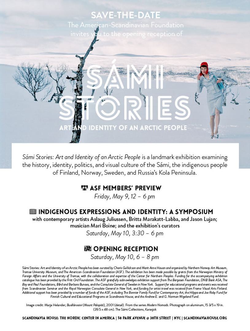 Denne sommeren formidler utstillingen Sámi Stories: Art and Identity of an Arctic People fortellinger om samisk historie, samfunn og kunst på Scandinavia House i New York. For første gang skal en stor utstilling og bøker om samisk kunst og identitet presenteres forfor et amerikansk publikum. Prosjektet er et samarbeid med mellom Nordnorsk Kunstmuseum og Tromsø Universitetsmuseum, og er produsert i forbindelse med den norske Grunnlovens 200-års jubileum.